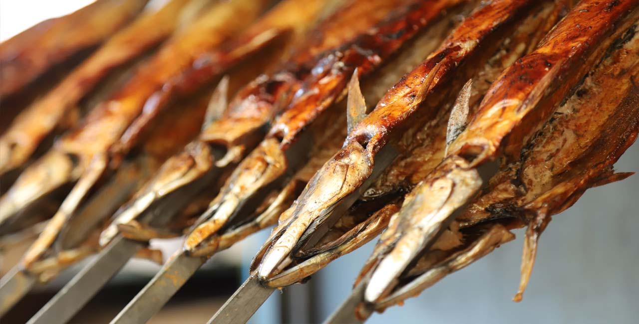 Wir verarbeiten seit jeher nur beste, fangfrische Makrelen aus der Nord- und Ostsee. Diese braten wir über unserem Holzkohlegrill, bis der Fisch außen schön knusprig und innen schön gar ist.